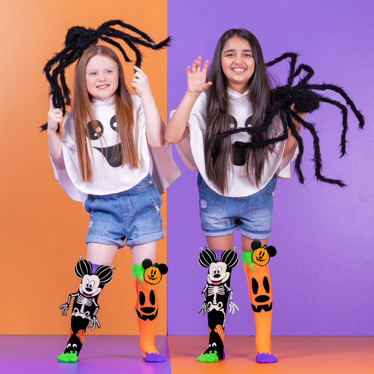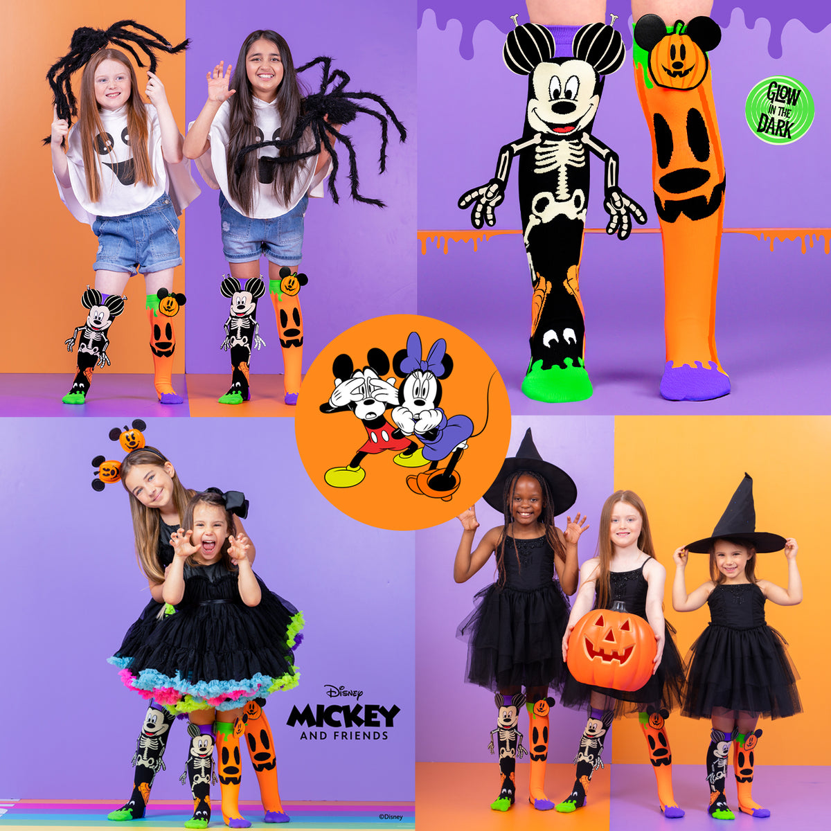 Step into the spooky season with our vibrant, mismatched Halloween-themed Mickey & Pumpkin socks! Featuring a fun Mickey skeleton and quirky pumpkin design, these glow-in-the-dark socks are perfect for trick-or-treating or Halloween parties.