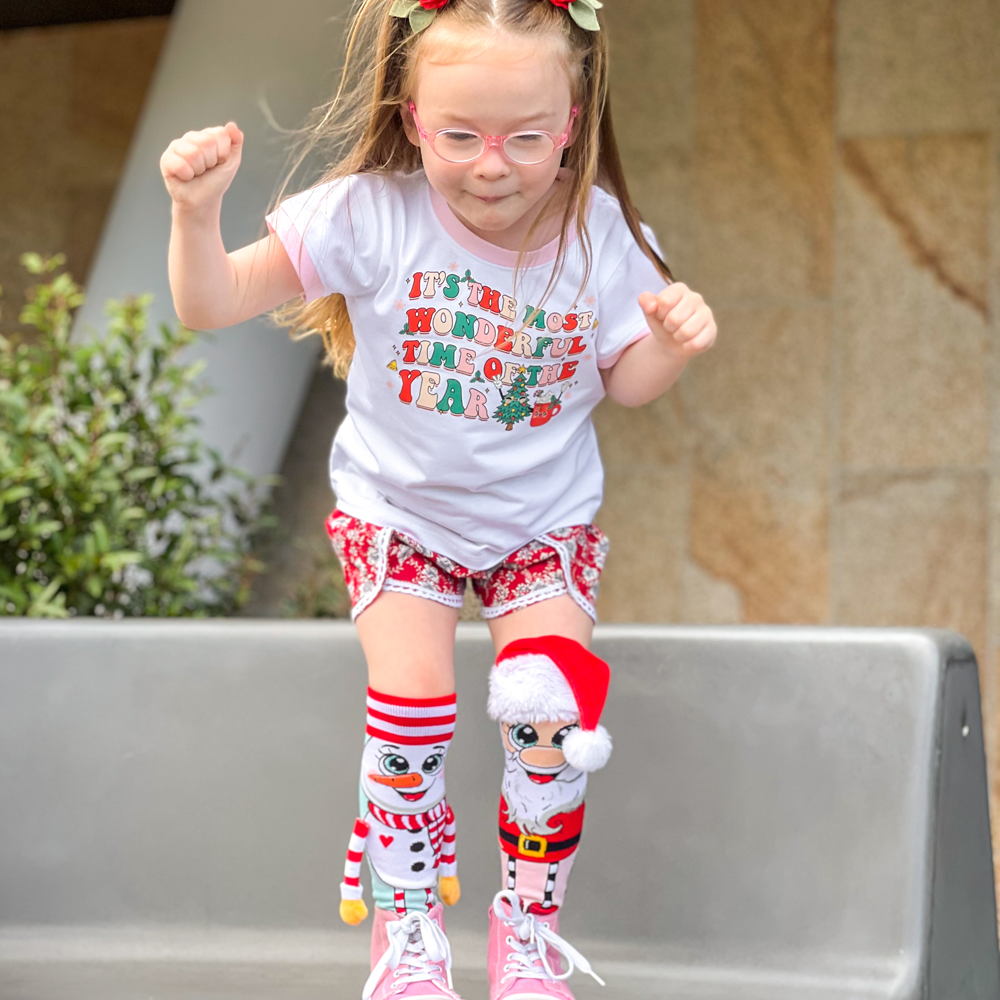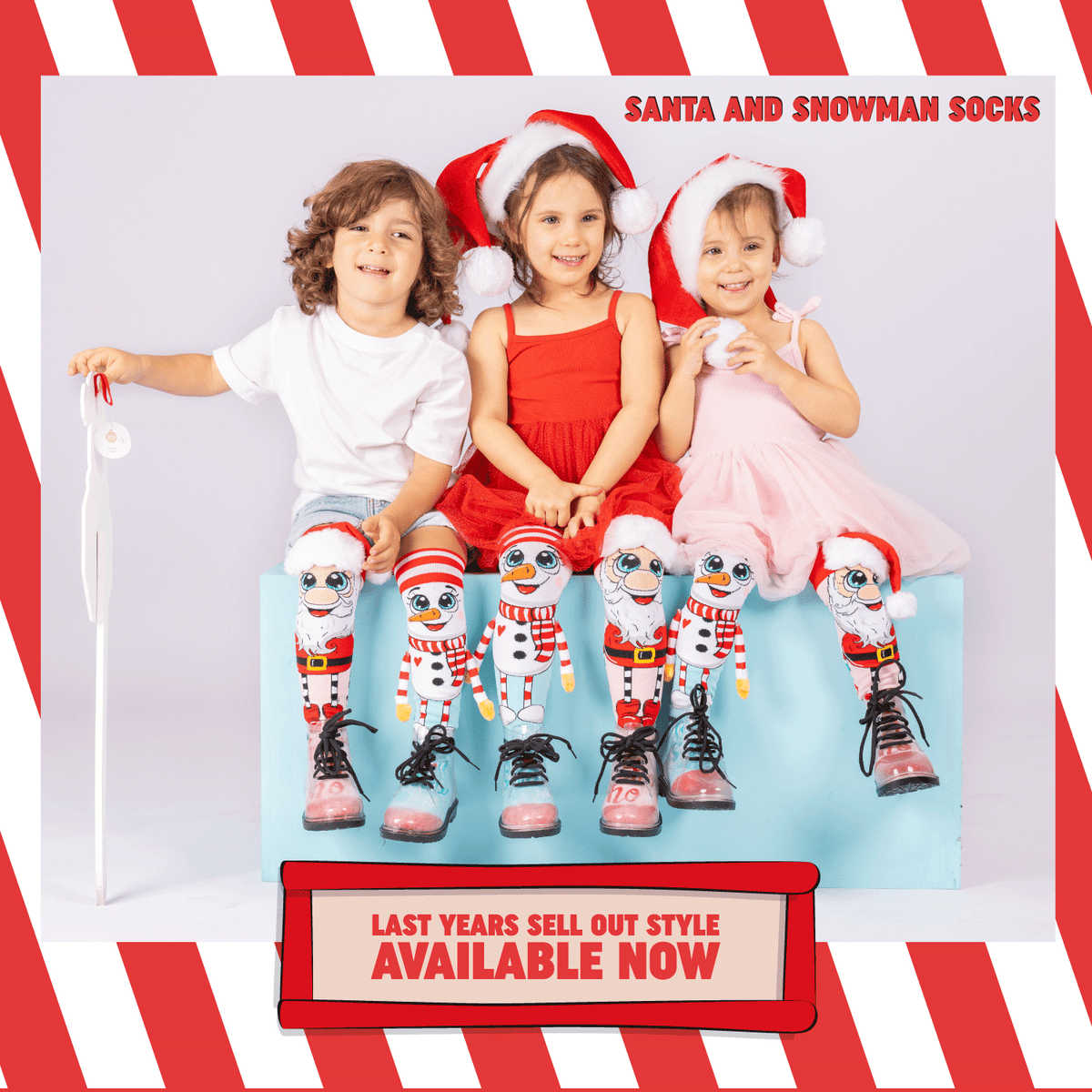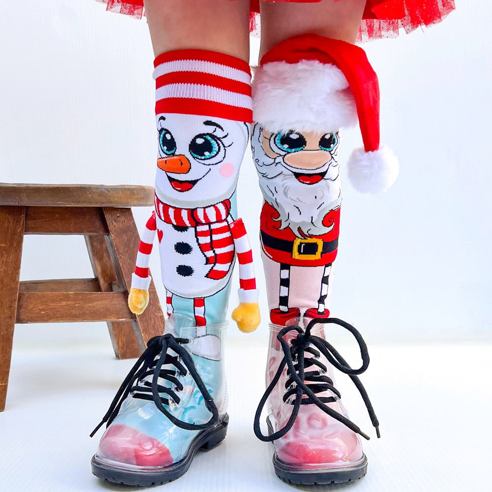 May the magic of Santa and Snowman MADMIA Socks light your world all year around. Made with plush Snowman arms and Santa Christmas hat attached, there is no better socks to wear to spread joy and happiness, whilst wishing everyone a very Merry Christmas and Happy New Year!